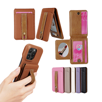 Cuero PU teléfono pegatina trasera tarjeta bolsa Anti-caída teléfono anillo hebilla titular tarjeta bolsa multifuncional tarjeta bolsa